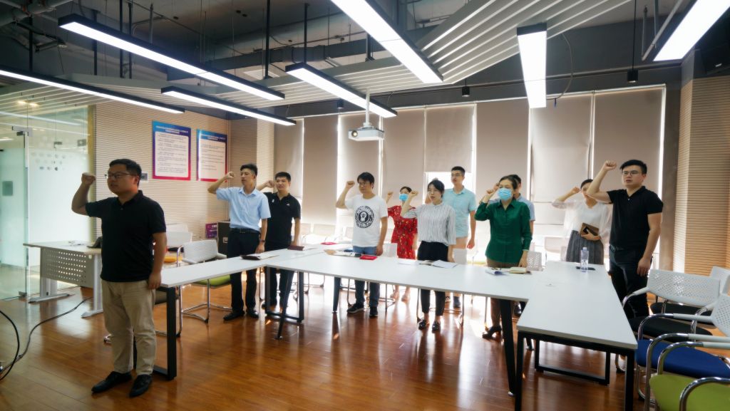 鏗鏘恢宏的誓詞,強(qiáng)烈震撼著在場的每一位黨員,一字一句,神圣而豪邁,體現(xiàn)了安徽啟迪黨總支黨員同志們對(duì)中國共產(chǎn)黨的無限忠誠。