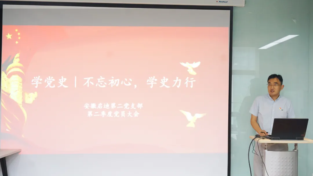 近日,安徽啟迪第二黨支部第二季度黨員大會(huì)在合肥啟迪科技城創(chuàng)客空間二樓黨員會(huì)議室召開。會(huì)議以“ 學(xué)黨史 | 不忘初心 學(xué)史力行 ”為主題,會(huì)議議程包括專題黨課學(xué)習(xí)、黨員轉(zhuǎn)正表決、安徽啟迪黨總支副書記胡偉做黨史學(xué)習(xí)部署等。安徽啟迪黨總支第二黨支部書記劉楊主持本次會(huì)議。