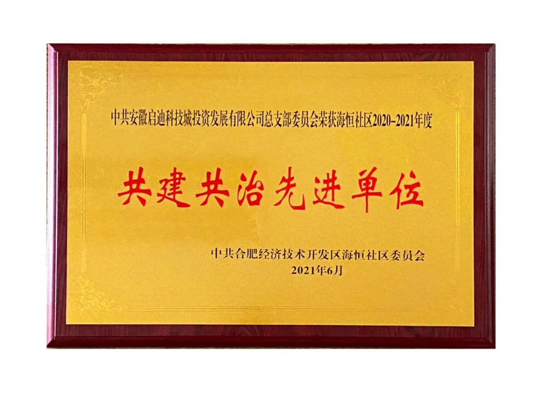 2021年6月:安徽啟迪黨總支入選海恒社區(qū)共建共治先進(jìn)單位名單!