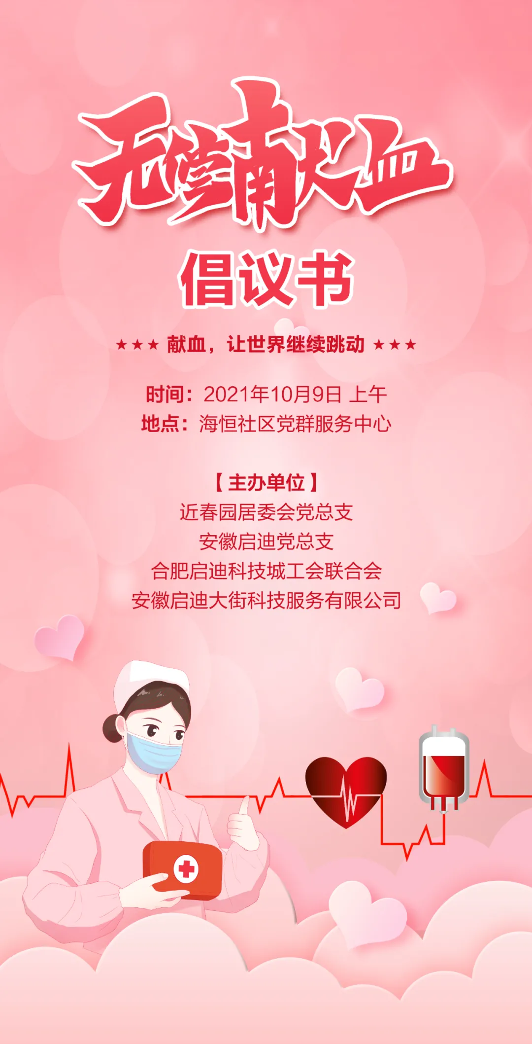 2021年9月:獻(xiàn)血,讓世界繼續(xù)跳動 | 合肥啟迪科技城無償獻(xiàn)血倡議書